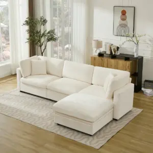 Discover unparalleled comfort with our premium modular sectional sofa featuring cloud-soft down filling in both backrest and seat cushions, complemented by a smart ottoman with hidden storage space. The luxurious chenille fabric ensures both elegance and durability, while two matching throw pillows add the perfect finishing touch to your relaxation experience. The versatile modular design allows you to create your ideal living space arrangement, making this sofa a perfect blend of comfort, functionality, and style.